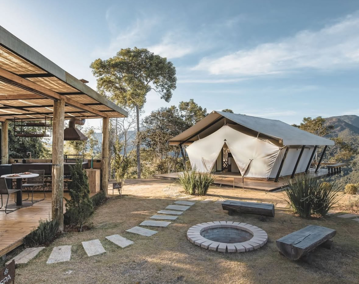 Se o seu Carnaval ideal tem cara de “um amor e uma cabana”, o Cabanas do Vale são aquele tipo de lugar que parece ter sido desenhado para casais. Um glamping de luxo dentro de um vinhedo boutique, com poucas cabanas, o que deixa tudo melhor: mais privacidade, mais silêncio, mais clima de refúgio.
