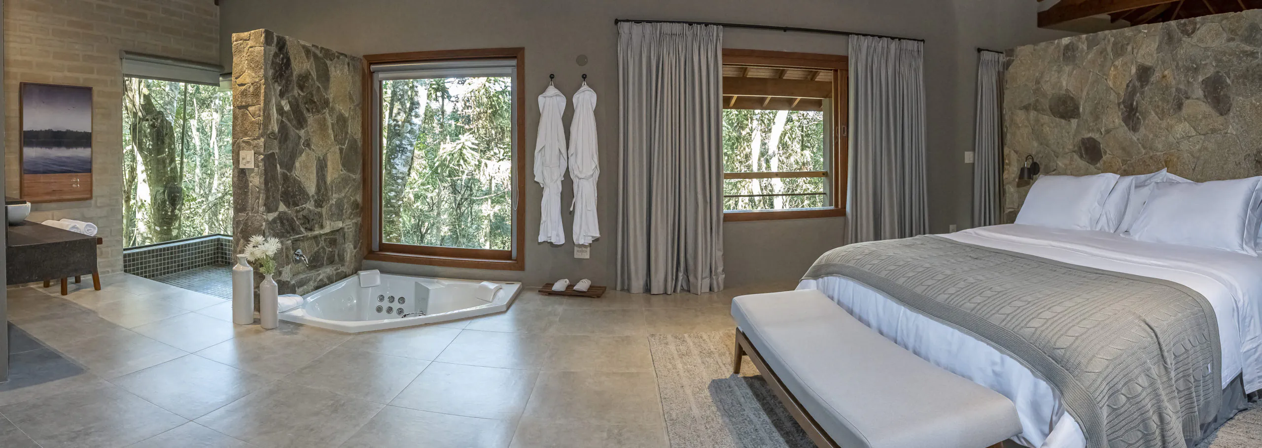 Por que eu escolheria: altitude, Mata Atlântica em volta, e a sensação de exclusividade total. E ainda dá para personalizar com massagens e decoração romântica (sim, pétalas e velas do jeito certo, sem exageros).